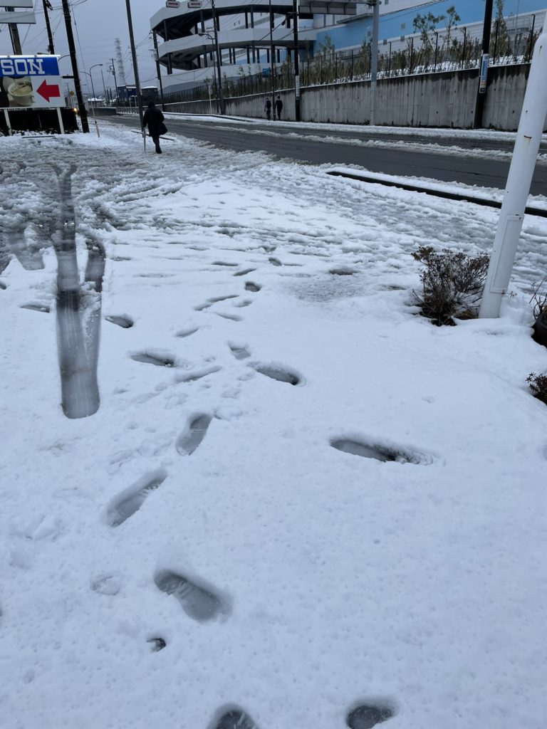 あれよあれよと言う間に雪の粒は大きくなり路面は白くなっていった。